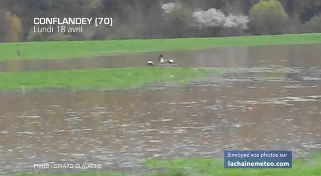 Suite aux fortes précipitations survenues entre vendredi et dimanche dernier (l'équivalent de 15 jours à 3 semaines de pluies en 48 heures), de nombreux cours d'eau sont en crue (le Doubs, la Saône, l'Ognon, la Seille, la Meuse, la Sarre, l'Ill, le Rhin...). Si on prend l'exemple de la Saône à Gray, le pic de crue s'est produit dans l'après-midi de ce mardi, dépassant la crue de référence de novembre 2013 et approchant celle de janvier 2012. On observe d'ailleurs quelques zones inondées dans certains secteurs de Franche-Comté, de Lorraine et d'Alsace.