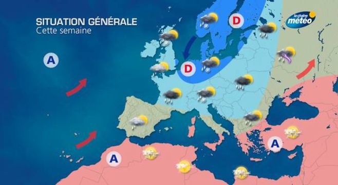 Un vaste système dépressionnaire alimenté en air polaire s’étend de la Scandinavie au Maghreb en passant par la France qui fait barrage à l’anticyclone des Açores. Les conditions sont propices à la persistance d’un temps frais, et même froid en matinée.