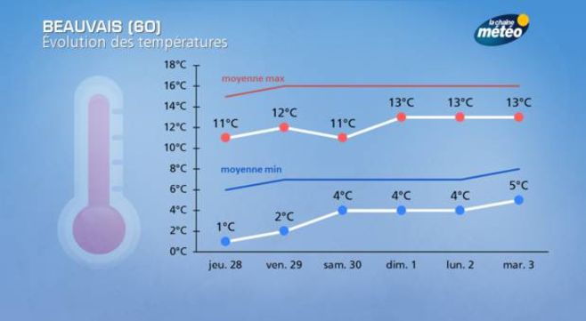 Jeudi prochain, les températures devraient commencer à lentement remonter. Le vent s’orienterait alors au nord-ouest, s’accompagnant d’un très léger redoux. Mais on n'atteindra toujours pas les moyennes de saison. Côté ciel, une amélioration est attendue jeudi au nord avec le retour d'un temps sec. En revanche, une dégradation est prévue des Pyrénées à la Méditerranée avec des pluies. Pour la fin de semaine, malgré la légère hausse des températures, le temps redeviendra agité partout avec du vent près des côtes de la Manche.