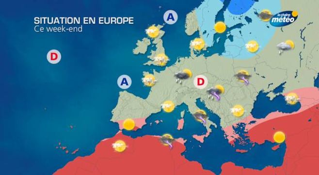 Entre un anticyclone présent sur l’Islande et une dépression très au large sur l’Atlantique, la France reste en marge de ces deux systèmes : ainsi, les nuages donnent quelques averses orageuses mais de belles éclaircies s’imposent également dans certaines régions.