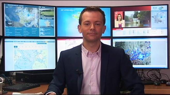 Aujourd'hui, une nouvelle dégradation se produit sous l'influence d'une dépression toujours centrée sur le Luxembourg. Les régions du nord-est et du centre-est sont les plus exposées à ces nouvelles précipitations. En allant vers les rivages de l'Atlantique et de la Méditerranée, on retrouve un temps plus calme et sec.