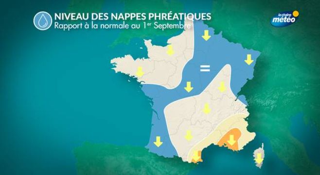 La situation hydrologique en profondeur est nettement plus favorable qu'en surface puisque les 3/4 des nappes phréatiques conservent un bon niveau de remplissage après un hiver et un printemps bien arrosés.