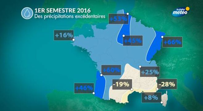 Depuis quelques jours, la sécheresse a cédé du terrain puisqu'il est tombé en moyenne 20 à 30 millimètres (soit l'équivalent de 10 à 15 jours de précipitations) sur un grand nombre de régions, au passage d'une perturbation pluvio-orageuse entre le 13 et le 16 septembre. En y regardant de plus près, on retrouve une certaine irrégularité des précipitations. Certains secteurs ont connu un arrosage copieux (90 mm à Biarritz et 100 mm à Ajaccio) tandis que d'autres ont été trop peu arrosés (8 mm à Nice, 10 mm à Bourges, 19 mm à Tours).
