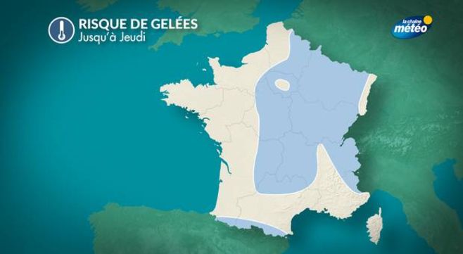 Sous l'influence de l'anticyclone scandinave, les températures resteront situées en dessous des moyennes de saison jusqu'en fin de semaine. A la faveur de nuits plus ou moins dégagées, des gelées sont à craindre jusqu'à jeudi inclus, en particulier du Massif Central aux frontières de l'est et jusqu'au bassin parisien.