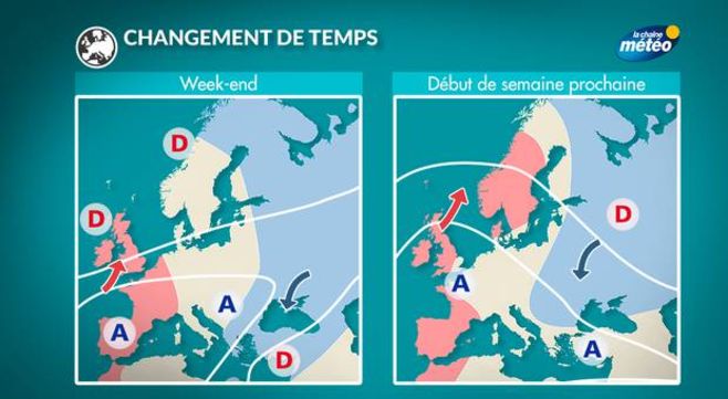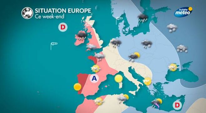 Avec le retour d’un flux d’ouest à sud-ouest, les températures repartent à la hausse pour repasser au-dessus des moyennes de saison. Ainsi, les minimales sont généralement comprises entre 3 et 13°C, d’est en ouest. L’après-midi, les maximales stagneront autour de 7°C dans l’est tandis qu’elles dépasseront les 12°C dans l’ouest et en Méditerranée, avec même des pointes à 16 ou 17°C.