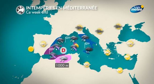 En fin de semaine, la dépression se comblera, les pressions remonteront et les conditions météo s'amélioreront alors nettement sur l'ensemble du bassin méditerranéen.