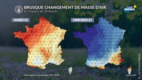 Les températures affichent des valeurs entre 3 et 8°C le matin du nord au sud. L'après-midi, les températures atteignent 10°C de moyenne au nord et 12°C au sud avec des pointes à 16°C près de la Méditerranée. Ces températures sont supérieures de 1 à 2°C aux normales de saison.