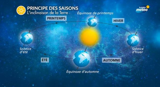 C'est l'inclinaison de l'axe de la terre (l’axe passant par les pôles) qui explique la plus ou moins longue exposition au soleil selon les saisons. En été, cette inclinaison favorise l'exposition d'un hémisphère face au soleil. En hiver, au contraire, cette inclinaison diminue cette exposition.