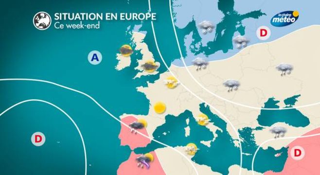 Des régions atlantiques aux Pyrénées et à la Méditerranée, le soleil brille tout au long du week-end. Quelques cumulus se développeront simplement sur les Alpes et les Pyrénées dimanche après-midi., mais ils ne prendront pas d'aspect réellement menaçant.