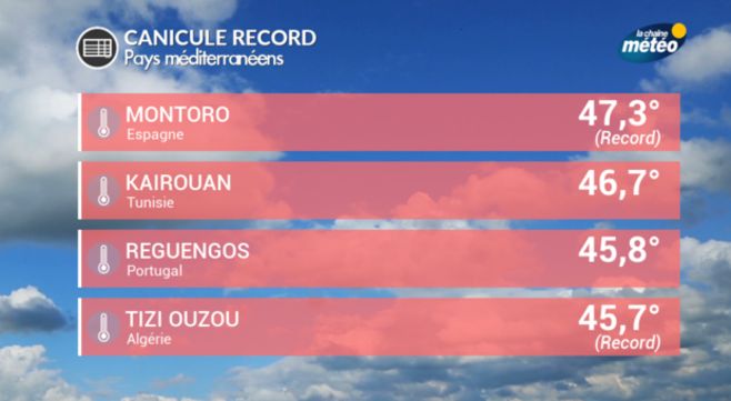 Les pays riverains de la Méditerranée subissent des températures exceptionnellement élevées depuis le début de l’été. Cette semaine, la Tunisie, l’Algérie, le Maroc et la péninsule ibérique sont frappés par des températures extrêmes.