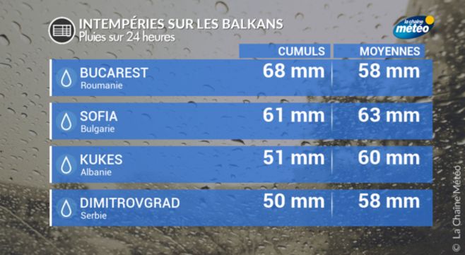 Une dépression s'est creusée sur la Serbie. Alimentée en air froid descendant d'Autriche et de l'air chaud remontant de Turquie, elle provoque de fortes intempéries en Bulgarie et en Roumanie.