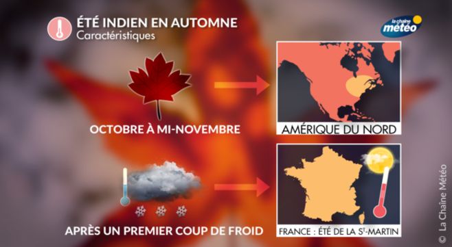 En réalité, il faut que les températures soient supérieures d'au moins 5°C à la normale pendant au moins 3 jours consécutifs, après l'apparition des premières gelées automnales. En France, les gelées sont plus tardives qu'au Canada et les variations de températures moins importantes. Le phénomène est donc plutôt rare. Joe Dassin aurait donc raison de chanter que l'été indien est "une saison qui n'existe que dans le nord de l'Amérique"... Chez nous, on parle parfois "d'été de la saint-Martin" (fêté le 11 novembre) et qui correspond à une belle période de temps doux et ensoleillé.