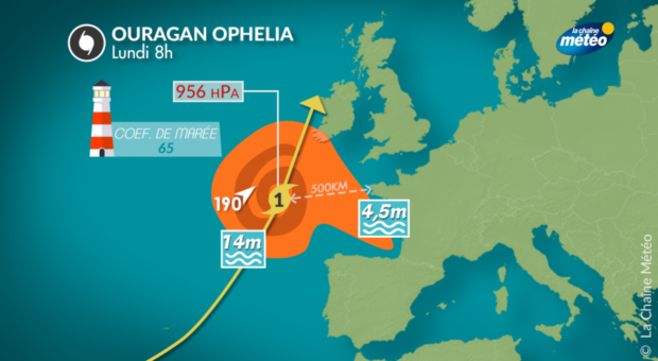 Le terme Ouragan est le nom local donné aux cyclones tropicaux dans l'Atlantique Nord et le nord-est du Pacifique en météorologie. Il arrive exceptionnellement, comme c’est le cas d’Ophelia que des ouragans remontent vers l'Atlantique et conservent leurs caractéristiques tropicales comme c'est le cas d’Ophelia qui frappe l’Irlande ce lundi.