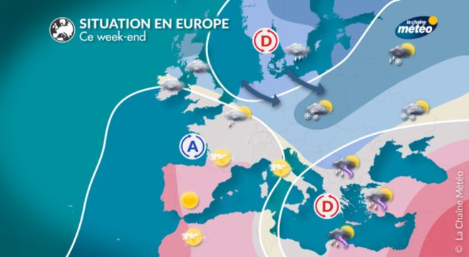 La situation météo pour ce week-end reste relativement calme avec la proximité de l'anticyclone, mais la France est néanmoins concernée par des passages nuageux et quelques pluies par le nord. Cette dégradation reste plutôt faible, mais le ressenti est très mitigé avec des températures à nouveau en légère baisse, notamment au nord-est.