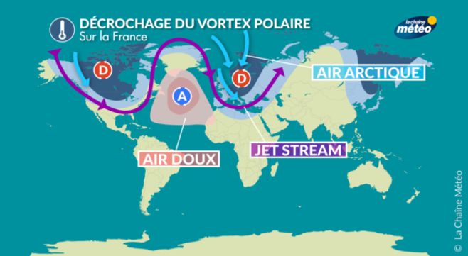 Le vortex polaire, dont le terme avait été très médiatisé lors des vagues de froid qui ont concerné les États-Unis ces derniers hivers, va connaître un décrochage depuis l'Arctique et plonge en direction de la France.