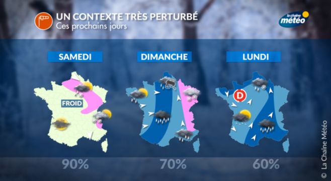 Pour votre week-end (samedi 9 et dimanche 10 décembre), les conditions météo sont hivernales mais plutôt calmes aujourd'hui samedi avant la mise en place d'un temps très agité et perturbé demain dimanche accompagné d'un net redoux.