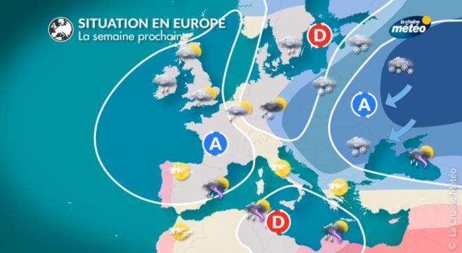 Tout au long de cette semaine, les températures restent autour des valeurs de saison avec quelques petites gelées le matin. L'après-midi, on attend de 5°C en Alsace à 10°C en Bretagne pour le nord, de 6°C sur le Lyonnais à 12°C sur la côte atlantique jusqu'à 14°C près de la Méditerranée.