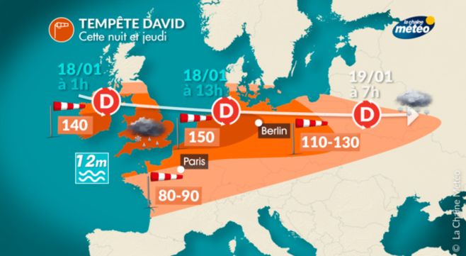 Cette "bombe dépressionnaire" a été baptisée tempête DAVID, en vertu de la liste des noms franco-ibérique.