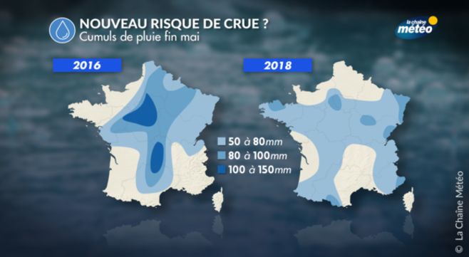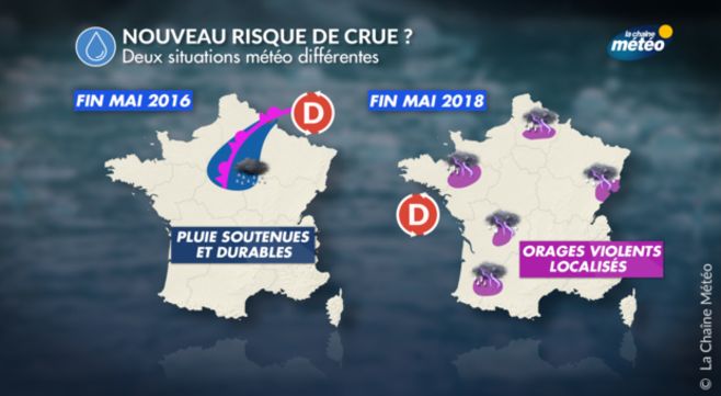 La nuance peut paraître minime, et pourtant, elle fait toute la différence. Cette année, la France a connu aussi un mois de mai pluvieux avec des valeurs supérieures aux moyennes sur les deux tiers sud du pays. Le bassin parisien a reçu des précipitations très hétérogènes mais globalement proches des moyennes. Cela dit, ces pluies d'orage surviennent également dans un contexte de sols saturés par les pluies hivernales record, un peu à l'image de 2016. Mais les points communs s'arrêtent là.