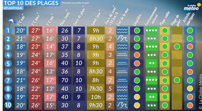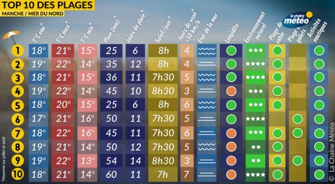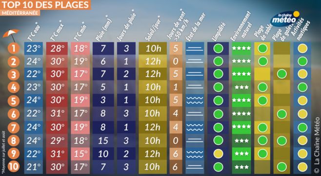 Voici le classement réalisé par les équipes de La Chaîne Météo. La méthodologie utilisée pour ce classement est expliquée en bas de page.