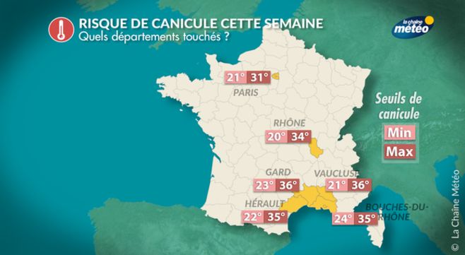 A ce jour, nos prévisions envisagent la poursuite d'un temps très chaud sur la France, en particulier en allant vers le centre-est et le sud-est. Nous ne prévoyons pas, pour l'instant, de canicule généralisée comme en 2003, 2006 ou 2015, où les températures atteignaient des pics entre 38°C et 40°C jusqu'en région parisienne, nous en serons donc loin.