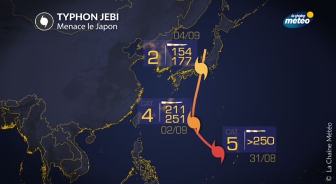 Jebi, né la semaine dernière en mer des Philippines, est devenu un Super Typhon (catégorie maximale) jeudi passé avant de faiblir samedi. Il a été le troisième super typhon de la saison à se former dans ces eaux, après Jelawat et Maria. Il est aussi, à ce jour, le cyclone le plus puissant de l’année 2018, tous océans confondus.