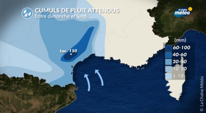 Nouvel épisode très pluvieux entre dimanche et lundi du golfe du Lion aux Cévennes.