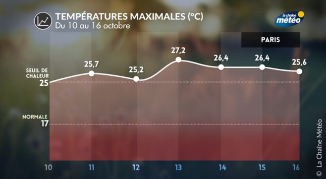 Ainsi, le temps a été exceptionnellement sec dans les régions allant du centre-ouest au nord-est qui n’ont parfois pas vu une seule goutte d’eau depuis des semaines. Les perturbations circulaient en effet bien plus à l’ouest et au nord sur l’Atlantique. L'Europe de l'ouest et la France se sont donc retrouvées dans un flux de sud faisant remonter de l'air d'origine sub-tropicale. Les températures étaient donc très nettement au-dessus des normales, en particulier sur la moitié nord. Par exemple, à Paris, la température maximale n'est pas descendue en-dessous de 25°C (seuil de chaleur) pendant 7 jours consécutifs, ce qui n'était jamais arrivé durant un mois d'octobre.