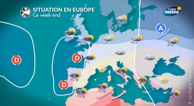 Après les fortes pluies dans le sud-est qui se seront évacuées par l’Italie, les conditions devraient redevenir plus calmes et sèches samedi avant une nette dégradation du temps par l’ouest dimanche.