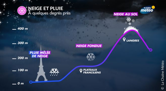 Notre infographie indique qu'à un degrés près, on peut passer de la pluie à la neige.