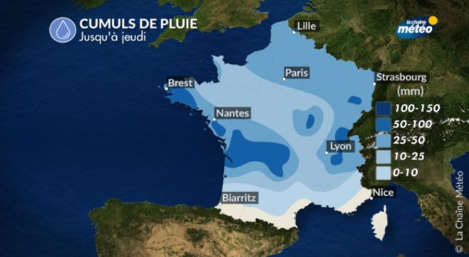 Après un week-end pluvieux, on n'attend pas d'amélioration significative. L'anticyclone des Açores est aux abonnés absents et les perturbations atlantiques continuent à défiler, nous apportant beaucoup de pluies, sauf dans le sud-est qui reste privilégié.