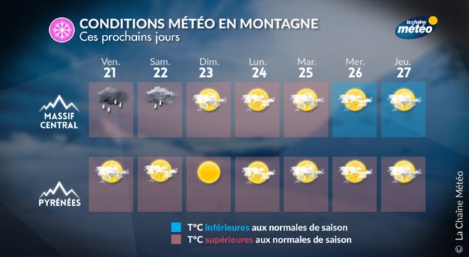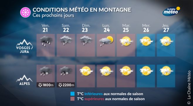 A quelques jours de Noël, la Chaîne Météo fait un point sur l'enneigement présent dans nos différents massifs et les prévisions météo pour le début des vacances de Noël.