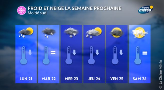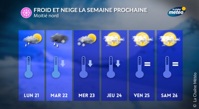 Mardi, une perturbation arrivera par l’ouest et donnera de la neige à l’avant au contact de l’air froid. L’échéance se rapprochant, on peut déjà annoncer que les régions du nord et de l'est seront les plus exposées à ces chutes de nige. On surveillera ensuite la formation de dépressions en Méditerranée pour la deuxième partie de semaine et le risque de remontée d’air instable sur le sud-est avec de fortes chutes de neige à craindre.