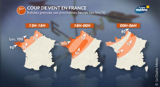 La moitié nord de la France reste sous l'influence des dépressions qui circulent sur les îles britanniques. Vendredi soir, une nouvelle perturbation active, liée à la dépression Erik, a traversé le nord-ouest du pays et le vent de secteur sud-ouest s'est renforcé à nouveau à son passage. Les rafales ont atteint localement les 100 à 120 km/h près du littoral et 70 à 90 km/h dans les terres.