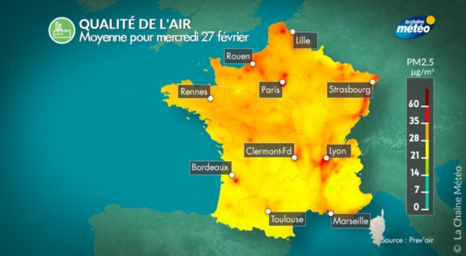 En raison de l'absence de vent, de la douceur et du temps sec, un pic de pollution aux particules fines se produit ce mercredi en région parisienne, sur le nord-ouest, le nord-est et la vallée du Rhône.