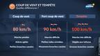 C'est sur les côtes de la Manche et l'extrême nord du pays que le vent souffle le plus fort ce mercredi avec des rafales de l'ordre de 80 à 100 km/h en rafales au passage des averses. Sur le reste de la moitié nord, les rafales de vent seront moins puissantes et généralement comprises entre 60 et 80 km/h sous les averses.