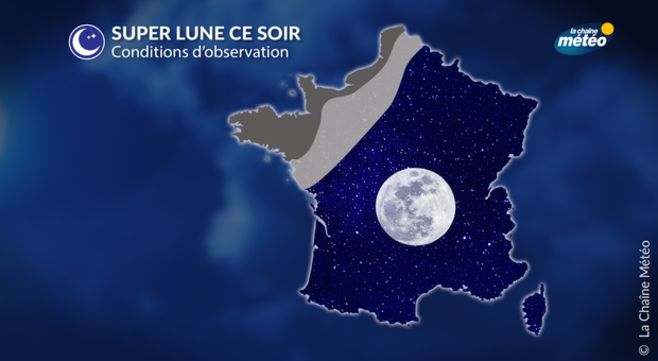 Les conditions seront globalement clémentes pour observer le phénomène. Les trois quarts du territoire disposeront d’un ciel dégagé hormis la Bretagne, la Normandie et les Hauts-de-France. Ces régions pourraient bénéficier de quelques trouées qui leur permettront temporairement d’observer la super Lune.