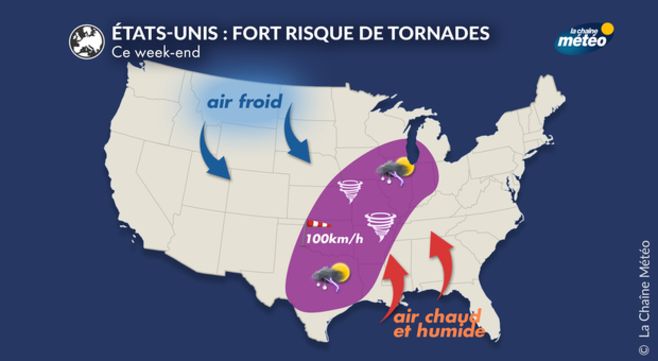Les Grandes Plaines américaines subissent actuellement de violents orages avec un risque très élevé de tornades jusqu'à mardi. près de 70 millions d'Américains affrontent la période météo la plus dangereuse de l'année pour les grandes plaines et le sud des États-Unis.