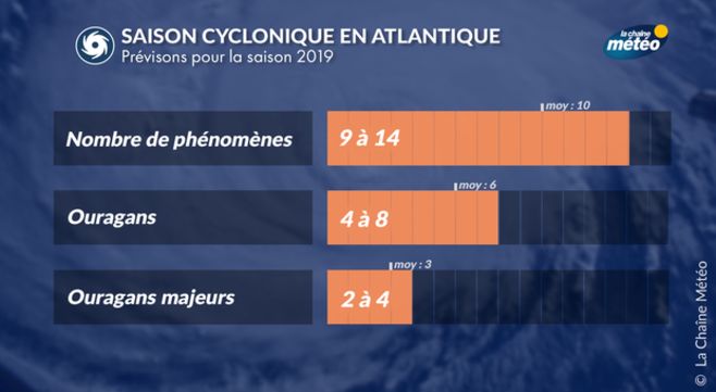 De son côté, le Tropical Storm Risk prévoit une saison cyclonique 2019 légèrement inférieure à la moyenne, avec des chiffres presque identiques à ceux de la NOAA, à savoir 12 phénomènes, dont 5 pourraient évoluer en ouragans et 2 en ouragans majeurs.