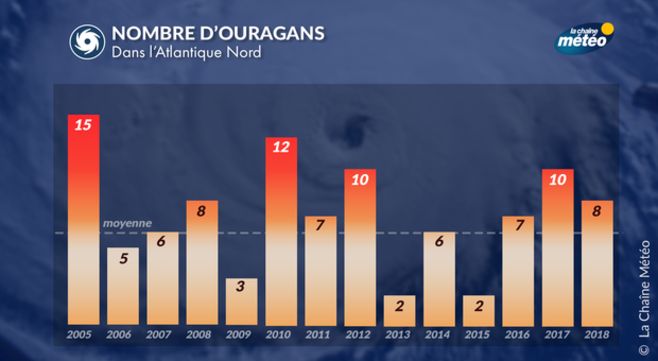 En 2017, la saison dans l’océan Atlantique nord a figuré parmi les plus actives depuis le début des relevés, avec des phénomènes dévastateurs (Harvey, Irma ou encore Maria dans les Caraïbes). Comme 2017, la saison 2018 s’est située au-dessus des moyennes (calculées par la NOAA d’après la période 1981/2010). Cette dernière saison a présenté, pour l’Atlantique nord, 15 phénomènes cycloniques, avec 8 ouragans dont 2 qui ont atteint la catégorie 3 sur 5, qualifiés alors de “majeurs”.