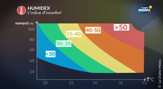 Quand les températures sont élevées et que l’humidité arrive, votre ressenti se dégrade nettement : sensation de lourdeur, de chaleur étouffante... En météo, nous disposons d’un indicateur qui permet de quantifier ce ressenti : l’Humidex.