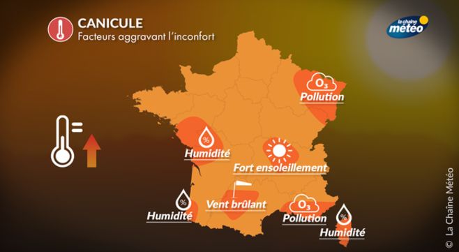Ainsi, la température ressentie avec un taux d'humidité important est plus élevée que celle affichée sur les carte de prévisions. Aussi d'autres paramètres doivent être pris en compte dans le calcul de la température ressentie : l'ensoleillement mais aussi la vitesse du vent. Nos prévisions météo intègrent d'ailleurs tous ces paramètres pour établir les températures ressenties des différentes villes de France.