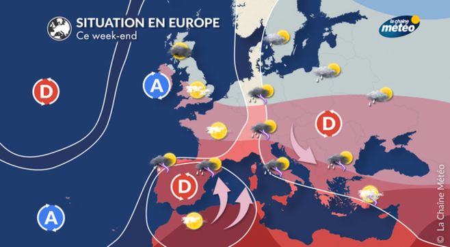 Pour votre week-end, vous bénéficiez de conditions météo plutôt agréables avec des températures estivales, sans excès. Un risque orageux apparaît cependant sur les Pyrénées et les reliefs de l'est.