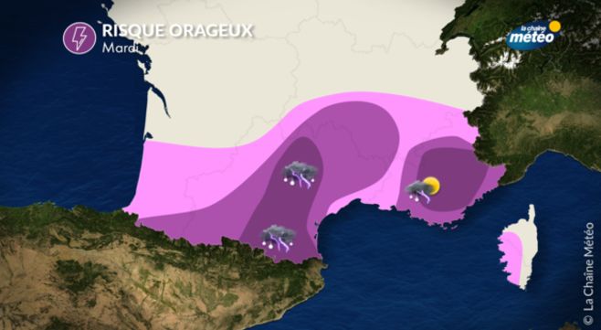 Après un lundi déjà orageux au sud-ouest, ceux-ci se décalent vers la région PACA avec toujours un risque important de fortes pluies et de grêle ce mardi 9 juillet. Partout ailleurs, sur les deux tiers nord de la France, une météo ensoleillée persiste mais la sécheresse se fait sentir.