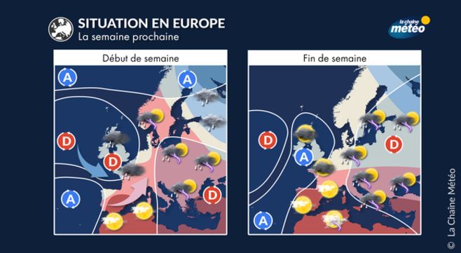 La France se situera en bordure de perturbations circulant sur les îles britanniques et de hautes pressions bien implantées sur le bassin méditerranéen. C'est donc un temps souvent contrasté que l'on retrouvera entre des régions du sud plus favorisées que celles du nord.