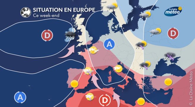 Ce samedi, le soleil domine sur la plus grande partie du pays avec quelques développements nuageux, plus nombreux en direction des reliefs et près de la Manche. En soirée, un risque d'orage concerne le relief des Pyrénées et les Alpes du Sud.