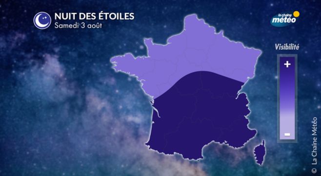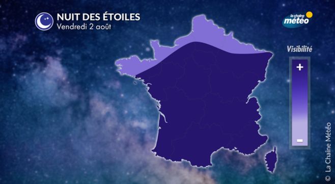 En dehors des quelques nuages présents sur le nord (les côtes de la Manche et les Hauts-de-France en particulier) ce vendredi et samedi, les conditions météo seront optimales pour l'observation du ciel en pleine nuit.