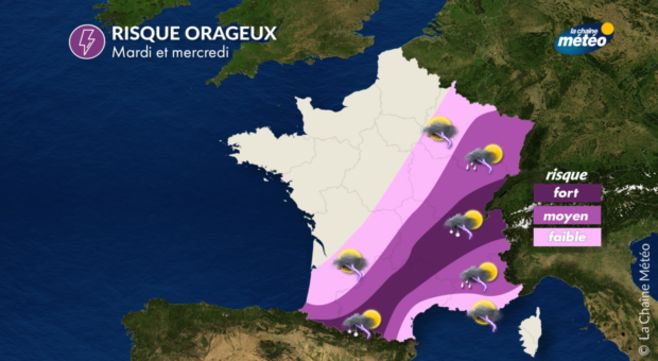 Mardi et mercredi, une importante dégradation orageuse se produira en France. Certaines régions seront particulièrement exposées à ce risque d'orage.