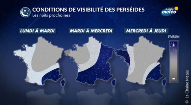 Les étoiles filantes les plus spectaculaires de l'année sont de retour : le pic d'intensité a lieu entre ce lundi et mercredi, et spécialement du lundi 12 août au mardi 13 août. La météo sera plutôt bonne pour les apercevoir, à l'exception d'une partie est du pays.