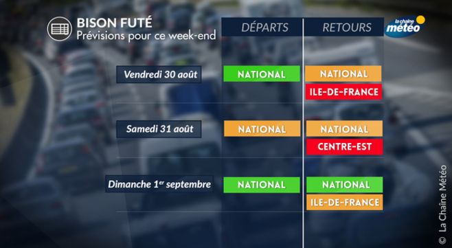 Pour ce dernier week-end de vacances, les routes sont chargées. C'est surtout cette journée de samedi qui est la plus problématique, avec des conditions difficiles à l'échelle nationale dans les 2 sens. Sur le centre-est et l'Île-de-France, les conditions de circulation sont très difficiles jusqu'à demain dimanche dans le sens des retours. Prudence en particulier dimanche, avec des pluies localement orageuses sur le centre-est, les routes seront glissantes avec quelques phénomènes de ruissellement possibles.